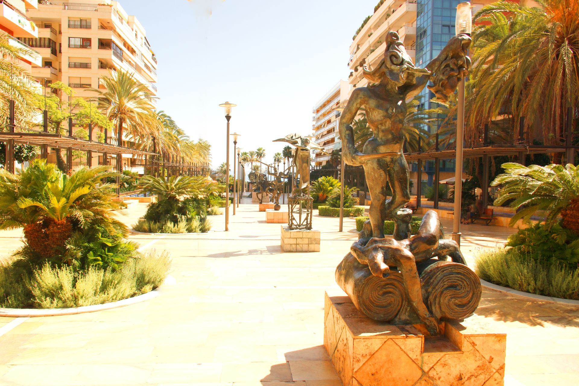Avenida del Mar in Marbella, Spain, is an enchanting avenue that seamlessly blends elegant charm with artistic sophistication. This beautiful boulevard is a delightful treat for visitors, offering a serene and picturesque setting for relaxation and exploration.